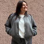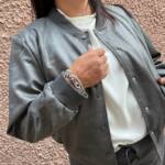 **Abbigliamento Sotto**: Indossa una semplice maglia a maniche lunghe o una camicia oversize in morbido cotone, leggermente sblusata, per un look casual ma sofisticato. I colori neutri o le tonalitร pastello possono creare un bellissimo contrasto con il bomber.