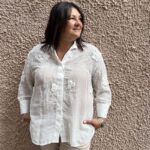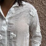 La camicia bianca con ricami floreali è l’eleganza discreta che fa la differenza. Leggera e luminosa, il tessuto è impreziosito da ricami e applicazioni di fiori tono su tono, che creano un effetto sofisticato senza esagerare. Linee pulite, vestibilità morbida ma strutturata, collo classico e polsi delicati: un capo che unisce femminilità e versatilità. Perfetta da indossare da sola, sotto un blazer, o come elemento di layering per aggiungere texture e profondità a qualsiasi outfit.
