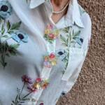 4. **Serata Elegante:** Per una serata speciale, abbinala a un pantalone palazzo in satin e scarpe con tacco alto. Scegli accessori minimalisti, come un collier delicato, per bilanciare la ricchezza dei bottoni gioiello e della fantasia.