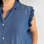 Questa camicia in chambray รจ un capo versatile che si adatta a molti look diversi. Puรฒ essere indossata in modo informale con dei jeans o dei pantaloni a palazzo per un look piรน casual e comodo, oppure abbinata a un pantalone per un outfit piรน curato ed elegante. Il suo tessuto leggerissimo รจ molto adatto anche per le calde giornate estive. La rouge sulla spalla le danno un tocco di femminilitร . Potreste anche abbinarla al suo pantalone a palazzo in coordinato.