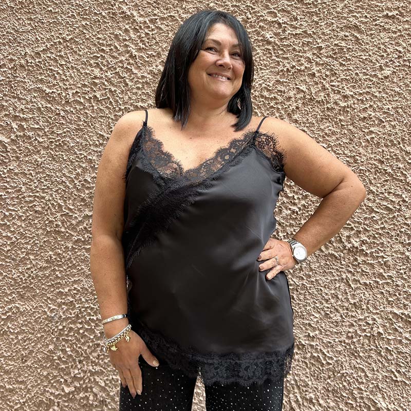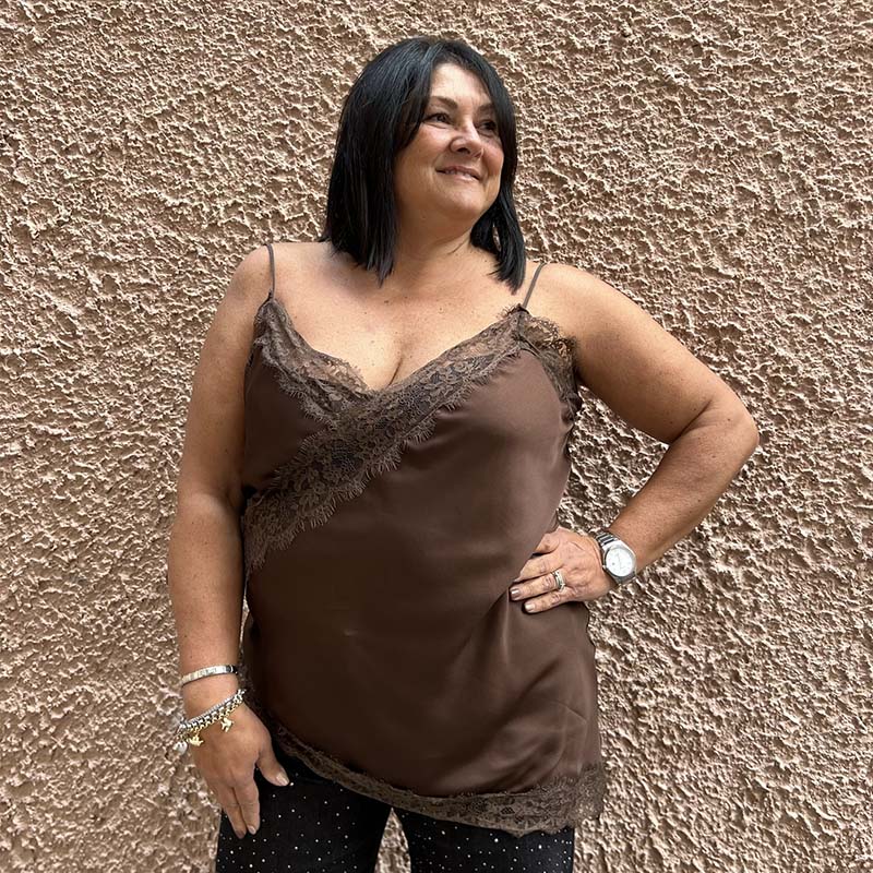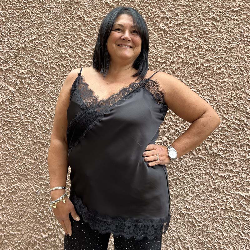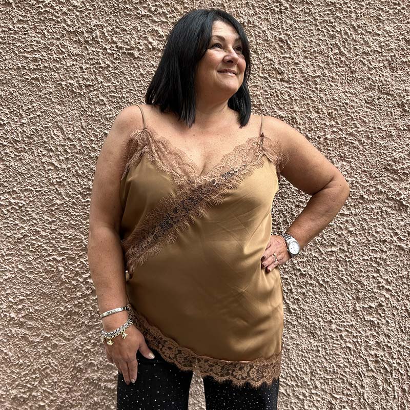 Scopri la canotta curvy che unisce eleganza e comfort in un unico capo versatile! Realizzata con un raffinato pizzo sulla parte superiore, sul fondo, questa canotta รจ pensata per esaltare le tue curve in modo delicato e sofisticato.