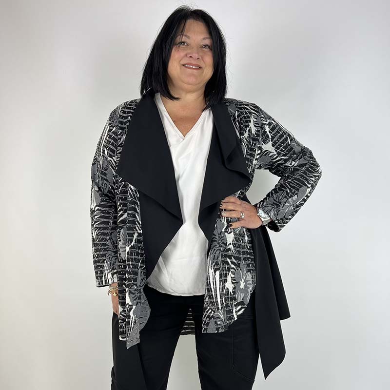 Scopri la perfetta combinazione di stile e comfort con il nostro cardigan a fantasia asimmetrico e svasato, pensato appositamente per valorizzare le curve senza rinunciare alla femminilità. Questa versione più compatta della linea offre una silhouette avvolgente e sofisticata, ideale per affrontare le fresche giornate autunnali con classe. Realizzato in un tessuto morbido e avvolgente si distingue per la linea pulita, rendendo ogni outfit unico e di carattere. La manica lunga garantisce calore e comfort, perfetta per le temperature primaverili, mentre i dettagli curati e la vestibilità studiata esaltano le forme femminili senza pressioni. Perfetto per un look casual ma ricercato, questo cardigan diventa il compagno ideale per le giornate di stagione, donando un tocco di stile in ogni occasione.