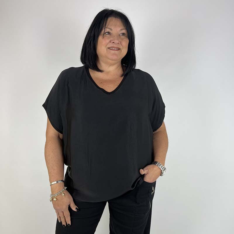 Questa casacca in viscosa è un capo pratico e alla moda, perfetto per chi cerca un capo semplice ma d’effetto che si adatti a molteplici occasioni.
