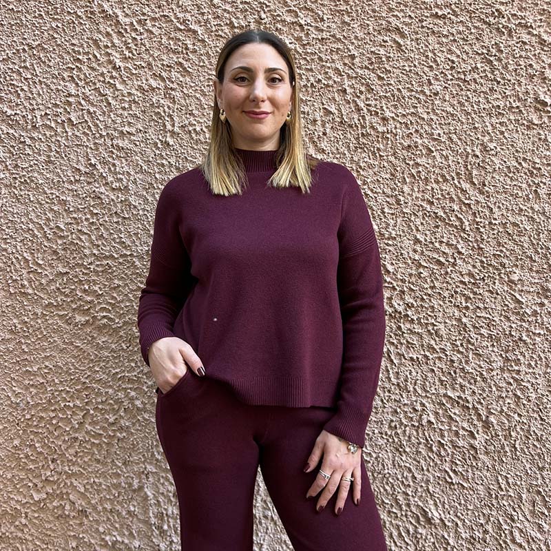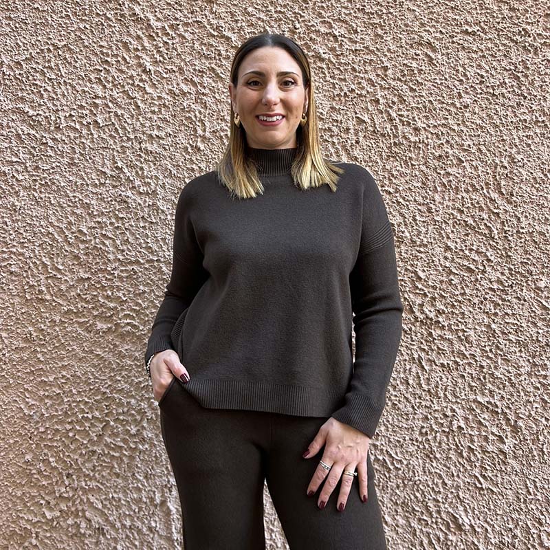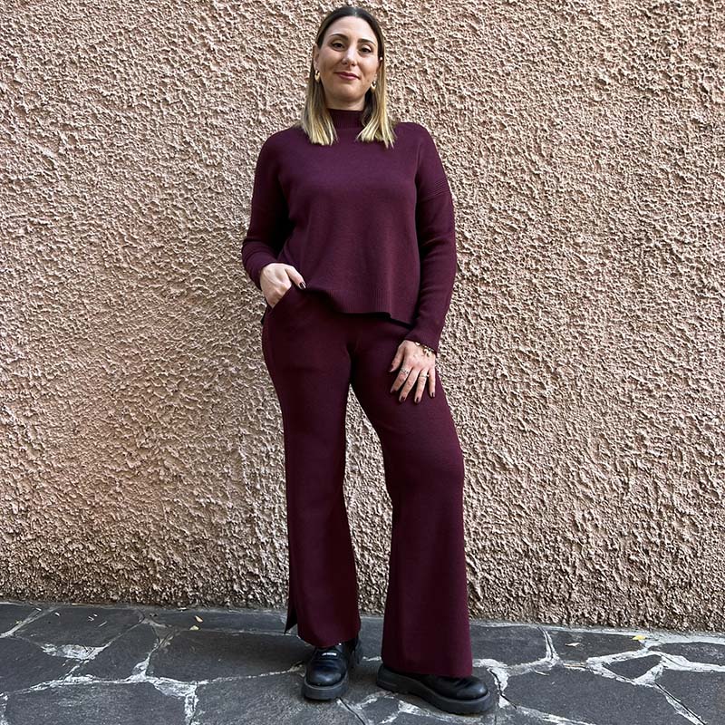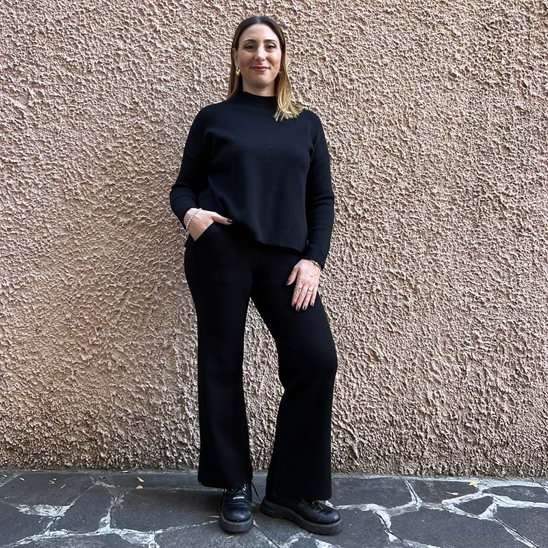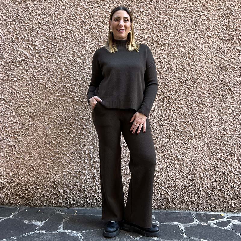 Scopri il perfetto equilibrio tra comfort e stile con questo completo misto viscosa morbido e particolare, ideale per le giornate invernali. La maglia, con il mezzo collo si adatta alle curve senza appesantire. La sua semplicitร  si adatta facilmente a ogni occasione, dal casual al piรน spory chic.