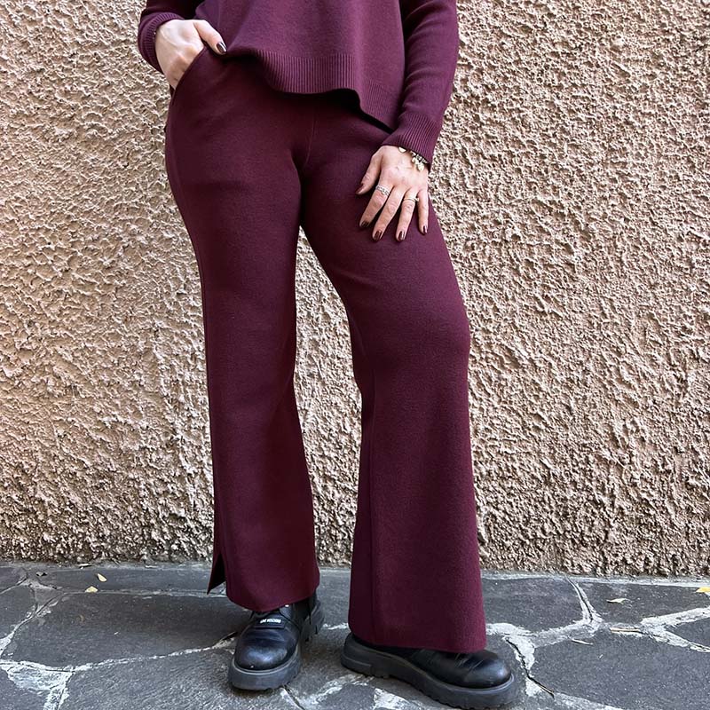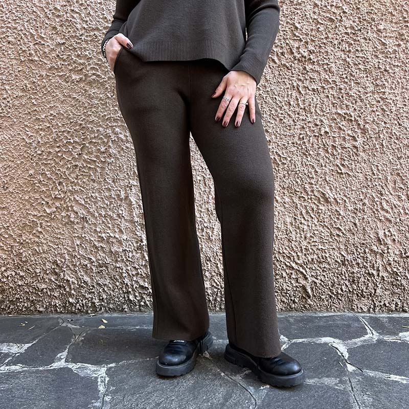 Il pantalone modello palazzo con spacchettino sul fondo e taschine laterali, offre una vestibilitร  comoda e chic. I dettagli degli spacchi completano il look con un tocco di originalitร , mentre la morbidezza del tessuto garantisce una sensazione di piacere e libertร  nei movimenti.