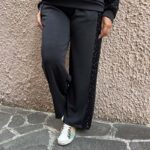 Scopri il massimo del comfort e dello stile con questa tuta a completo, pensata per chi vuole sentirsi alla moda senza rinunciare alla praticità. Il pantalone a palazzo con coulisse in vita, che permette di adattarlo perfettamente alla tua silhouette, e paillettes lungo la gamba, combina funzionalità e design innovativo, grazie alle tasche particolari che aggiungono un tocco di originalità e praticità ai tuoi look quotidiani. La felpa abbinata, con le maniche in paillettes, completa il completo offrendo un equilibrio perfetto tra semplicità e stile. Ideale per un outfit casual ma di tendenza, questa tuta è la scelta perfetta per chi ama sentirsi comoda senza rinunciare a un tocco di carattere.
