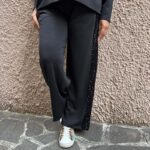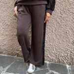 Scopri il massimo del comfort e dello stile con questa tuta a completo, pensata per chi vuole sentirsi alla moda senza rinunciare alla praticità. Il pantalone a palazzo con coulisse in vita, che permette di adattarlo perfettamente alla tua silhouette, e paillettes lungo la gamba, combina funzionalità e design innovativo, grazie alle tasche particolari che aggiungono un tocco di originalità e praticità ai tuoi look quotidiani. La felpa abbinata, con ricamo in paillettes, completa il completo offrendo un equilibrio perfetto tra semplicità e stile. Ideale per un outfit casual ma di tendenza, questa tuta è la scelta perfetta per chi ama sentirsi comoda senza rinunciare a un tocco di carattere.