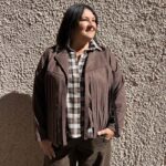 C’è qualcosa di istintivo e libero in questa giacca in eco dainetto con frange, come se custodisse lo spirito selvaggio delle strade polverose del West, ma con un’anima decisamente urbana. Il tessuto, morbido e caldo al tatto, avvolge con leggerezza e dona struttura senza irrigidire. Le frange, applicate con cura, si muovono seguendo i gesti e il vento, trasformando ogni passo in una piccola dichiarazione di stile.