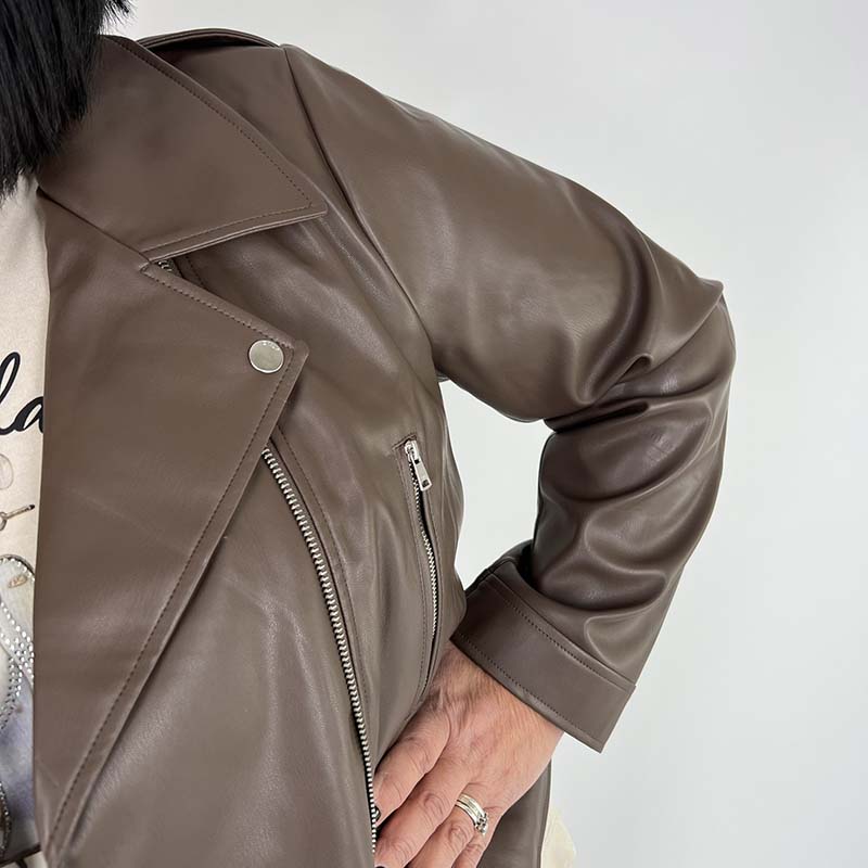 Scopri il nostro giacchetto in ecopelle curvy, un audace modello chiodo che abbraccia le curve con stile e comodità.