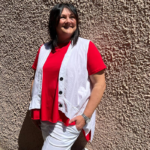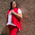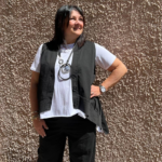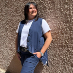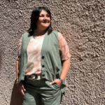 Completa il look il pantalone modello carota, con gamba ampia che si restringe leggermente sul fondo, offrendo comfort senza rinunciare a un tocco di modernità. La t-shirt, con lo stesso taglio svasato del gilet, è più corta davanti e più lunga dietro, creando un effetto dinamico e femminile. Tutti i capi sono realizzati in cotone leggerissimo elasticizzato, per una vestibilità perfetta e una sensazione di morbidezza sulla pelle.