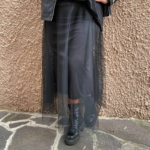 ** Indossa la gonna con una camicia in seta nera e un blazer strutturato. Scegli scarpe classiche come dรฉcolletรฉ e un foulard in tessuto morbido per dare un tocco di grazia professionale all’outfit.