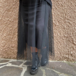 Questa elegante gonna lunga in tulle รจ un capo versatile e affascinante, perfetto per ogni occasione. Il suo design leggero e vaporoso aggiunge un tocco di femminilitร  al tuo look, mentre l’elastico in vita garantisce una vestibilitร  comoda e adattabile. Realizzata con materiali di alta qualitร , questa gonna offre un aspetto raffinato e una sensazione di morbidezza sulla pelle. Da abbinare a top aderenti o maglioni oversize, questa gonna รจ ideale per creare outfit da sogno, giorno dopo giorno.