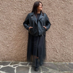 ** Abbina la gonna a una semplice t-shirt bianca e a una giacca di denim. Non dimenticare un cappotto lungo e stivaletti con tacco per un’aria piรน chic. Aggiungi accessori minimalisti per un look fresco e giovane.