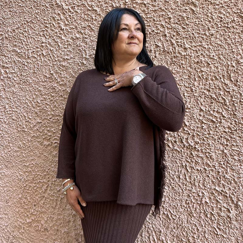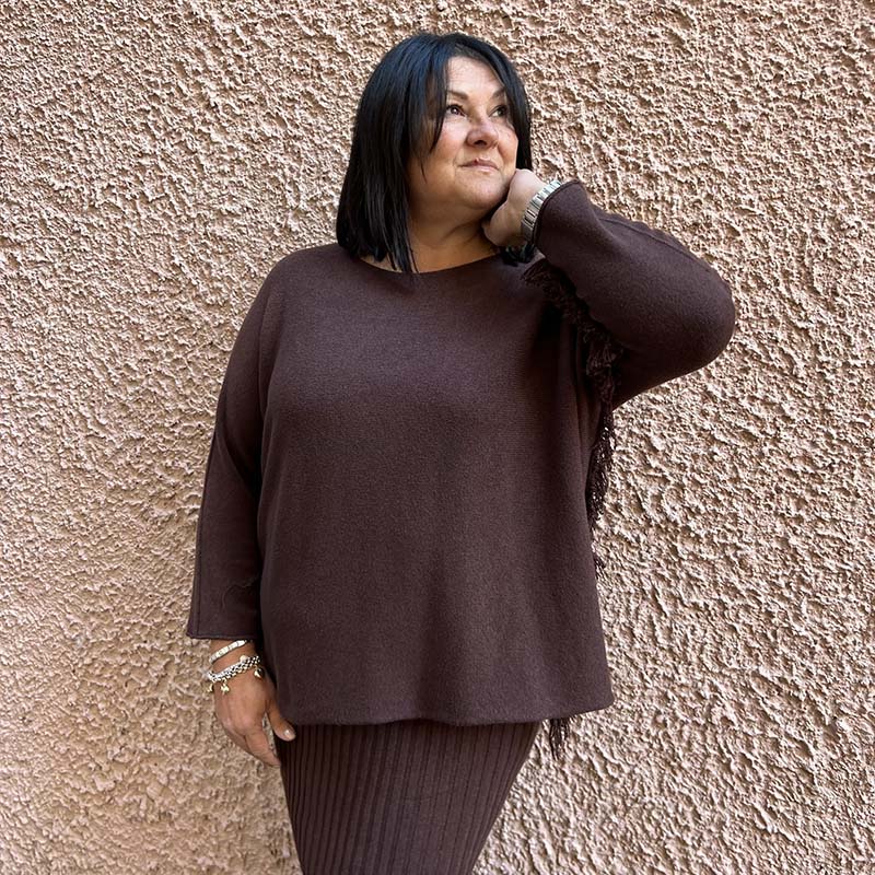Maglia curvy a scatoletta sfrangiata Mysa