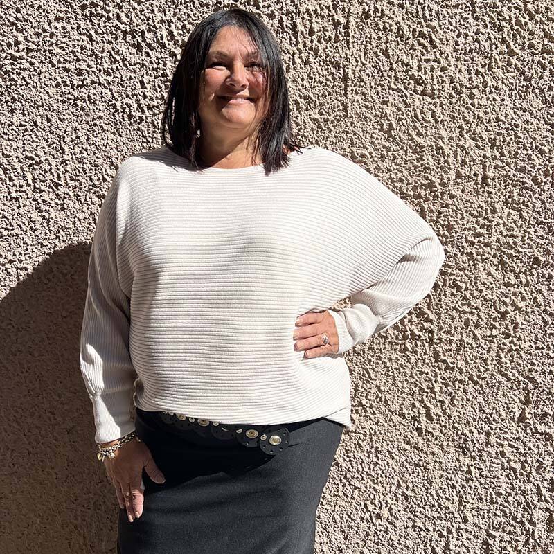 Comodo, audace e decisamente di tendenza: questo maglioncino curvy a costine รจ un capo che unisce stile e personalitร . Il taglio morbido e leggermente over accarezza la figura senza appesantire, mentre le costineโ studiate in posizione e spessore โ donano movimento e modernitร , valorizzando la silhouette con equilibrio.