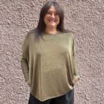 **Look Festivo:** Per una serata speciale, prova a indossarla con un pantalone palazzo in satin, per un gioco di texture elegante. Completa il look con scarpe con tacco, ideali per mettere in risalto i dettagli scintillanti della maglia.