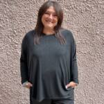 **Look da Ufficio:** Per un outfit professionale, indossa la maglia con una gonna midi a tubino in tessuto leggero e un blazer coordinato. Scegli scarpe con un tacco moderato e orecchini pendenti tono su tono per aggiungere un tocco di eleganza senza sovraccaricare il look.
