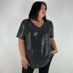 Fai brillare il tuo stile con la nostra fantastica maglia curvy a maniche corte, un vero must-have per ogni guardaroba cangiante e pieno di vita! Questa creazione unica è realizzata in un morbido tessuto di alta qualità, studiato per abbracciare le curve in modo elegante e confortevole. La maglia è interamente tempestata di paillettes scintillanti, che catturano la luce in modo straordinario, rendendola perfetta per ogni occasione speciale o per una serata con gli amici. Le maniche corte offrono un comfort ideale e un tocco di freschezza, mentre il taglio leggermente svasato scivola delicatamente sulle forme, valorizzando il décolleté. Questa maglia è una vera celebrazione delle curve e si adatta perfettamente a chi ama esprimere la propria personalità attraverso la moda! Sii audace, scintillante e sempre te stessa!