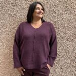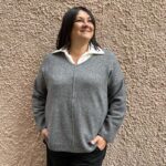 Essenziale ma mai banale, questo maglioncino curvy con scollo a V è il perfetto alleato per un look femminile e versatile. Il taglio morbido segue le linee del corpo senza segnare, mentre lo scavo profondo a V slancia la figura e valorizza il décolleté con delicatezza. Realizzato in maglia soffice e leggera, è ideale sia da solo che abbinato a camicie o top in contrasto per un effetto a strati elegante.