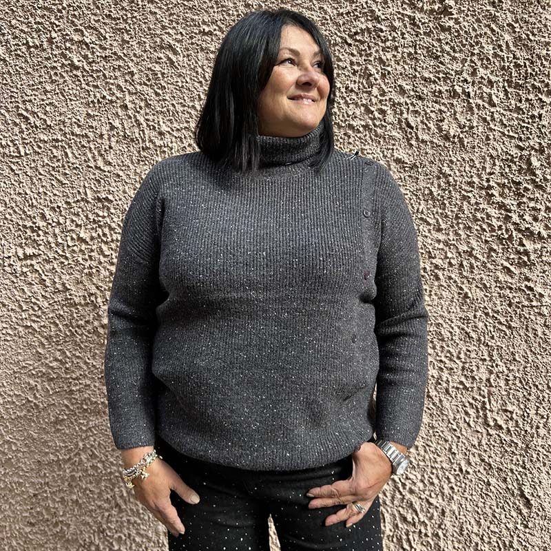 Eleganza discreta e comfort quotidiano si incontrano in questo maglioncino in tessuto caldo, pensato per accompagnarti con stile durante i mesi piรน freddi. Realizzato in un filato morbido e avvolgente, offre una piacevole sensazione di calore senza risultare pesante, garantendo libertร  di movimento e vestibilitร  impeccabile.ย Il design pulito e femminile รจ impreziosito da una fila di bottoncini decorativi tono su tono, un dettaglio raffinato che aggiunge un tocco di luce e ricercatezza al capo, mantenendone al tempo stesso lโ€™eleganza minimal. Lo scollo rotondo incornicia delicatamente il dรฉcolletรฉ, mentre i polsini e lโ€™orlo a coste definiscono la silhouette e assicurano una tenuta perfetta nel tempo.ย Perfetto da indossare con pantaloni sartoriali per un look sofisticato o con jeans e stivali per unโ€™eleganza piรน rilassata, questo maglioncino รจ un alleato versatile del guardaroba invernale. Disponibile in una palette di colori caldi e neutri, รจ il capo ideale per affrontare le giornate fredde con stile e comfort.
