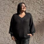 Un gioco di dettagli che fa la differenza. Il maglioncino con scavo a V si arricchisce di fili di lurex e maniche leggermente a palloncino. Un capo versatile e sofisticato, perfetto per chi ama i look sporty chic: indossalo con jeans e sneakers per un mood casual raffinato, o con pantaloni sartoriali e stivaletti per un effetto più elegante.