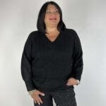 Maglia curvy scavo a V e lurex Only