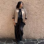 A completare la collezione, il pantalone a palazzo con fusciacca tono su tono, simbolo di fluiditร  e ricercatezza contemporanea.
