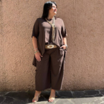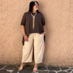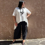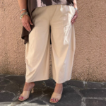 Abbinala ai pantaloni modello carota, ampi e comodi, con una gamba che si restringe leggermente sul fondo, per un look casual ma di carattere. Anche questi sono in viscosa elasticizzata, garantendo libertร di movimento e un fit impeccabile.