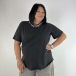 Scopri la nostra t-shirt in cotone 100% . La vestibilità morbida e comoda è pensata per valorizzare le curve, offrendo un look chic e rilassato in ogni occasione. Questa t-shirt è un capo intramontabile che si presta a molteplici abbinamenti! Con jeans skinny per un look casual ma elegante. Completa l’outfit con un paio di stivaletti o sneakers bianche per un tocco moderno. Con una gonna o sotto un blazer strutturato. Abbinala a pantaloni palazzo o a un jeans mom fit per un equilibrio perfetto tra eleganza e comfort.