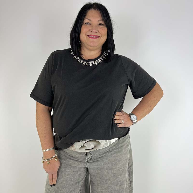 T-shirt curvy con strass al collo Only